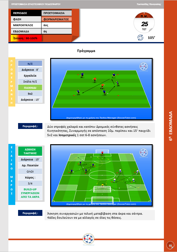Στις σελίδες του θα βρείτε οδηγίες οργάνωσης της προπόνησης, λεπτομερή περιγραφή και αναλυτικότατα και εντυπωσιακά σκίτσα με την βοήθεια του ειδικού σχεδιαστικού προγράμματος Tactics Manager της Soccer Tutor που έχουν σαν στόχο να προσφέρουν στους προπονητές ένα ολοκληρωμένο πρόγραμμα προετοιμασίας για ερασιτέχνες ποδοσφαιριστές.